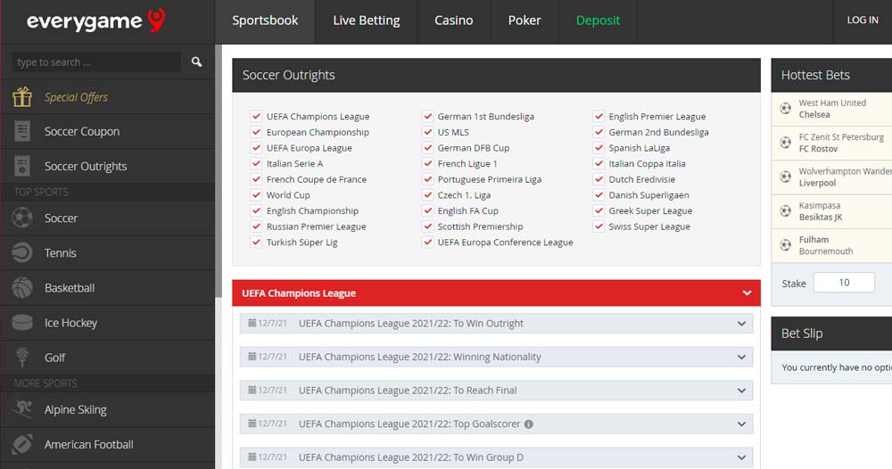 Although Everygame Sportsbook lacks the Asian Handicap, the online gambling site does have a lot of other options to bet on. It’s almost as if they knew sports wagering would pick up in the US as their selection is vast. Everygame Sportsbook has proven to be one of the leading bookies in the States and takes wagers on all US sports. This includes the popular Fantasy football (US) and esport options. The gambling firm is powered by Propriety.
